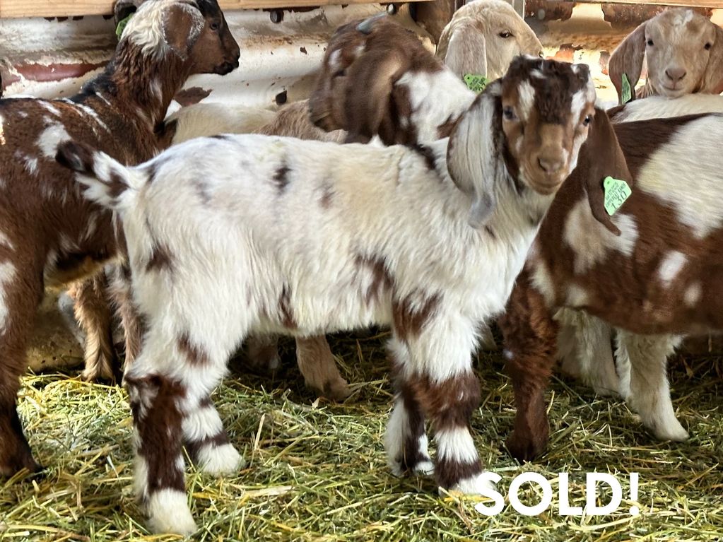 Pictured as a young buck we started breeding this guy in 2023 with kids arriving spring of 24. His kids are beautifully colored as well as built just right. He is the sire of all kids listed unless stated otherwise.